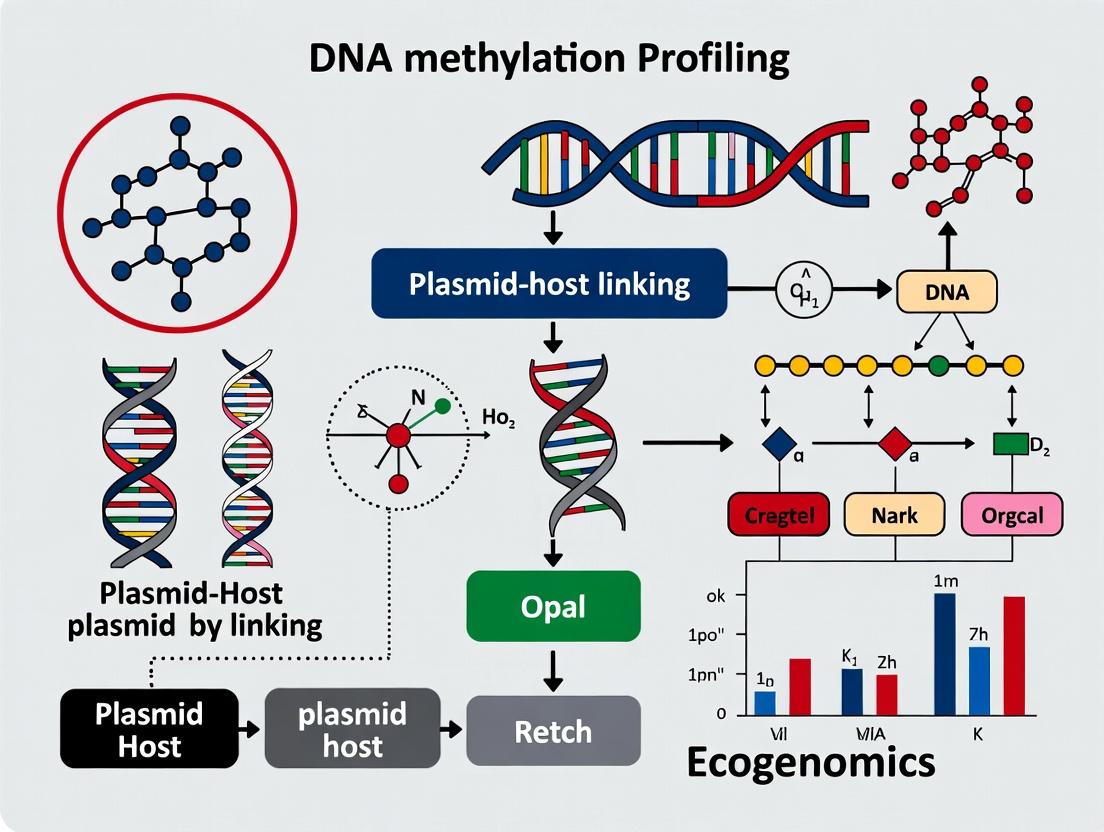 Metagenomic sequencing often fails to link mobile genetic elements like plasmids to their bacterial hosts, a critical gap for understanding antibiotic resistance and microbial ecology. This article details the methodology of DNA methylation profiling—exploiting the host-specific nature of restriction-modification systems—as a powerful tool for plasmid-host linking. We cover foundational principles, current laboratory and bioinformatic workflows (including PacBio and Oxford Nanopore platforms), optimization strategies, and comparative analysis against alternative methods. Aimed at researchers and bioinformaticians, this guide provides a comprehensive framework for implementing this cutting-edge technique to resolve plasmid-host dynamics in complex microbial communities.