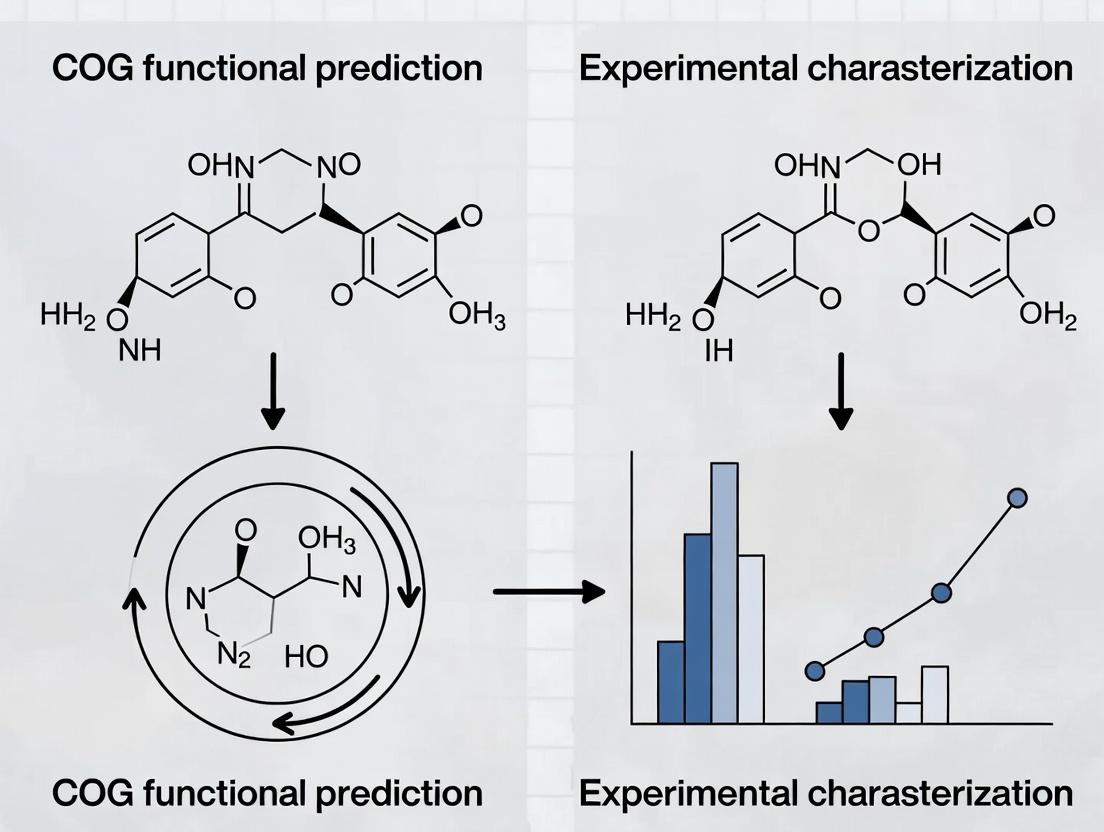 Conclusion These case studies demonstrate that COG-based predictions, which integrate evolutionary conservation with genomic context, provide a robust and accurate foundation for formulating testable functional hypotheses. When combined with structured experimental validation protocols, this approach significantly outpaces sequence similarity alone in correctly foreshadowing molecular function. For researchers in genomics and drug development, COG analysis remains an indispensable first step in prioritizing and characterizing novel therapeutic targets.