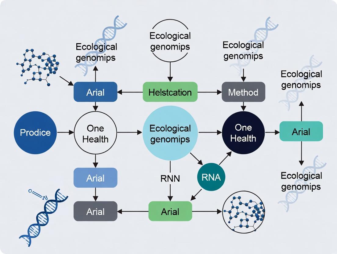 The integration of the One Health paradigm with cutting-edge ecological genomics methods represents a transformative shift in how we monitor, understand, and mitigate health threats of global significance. By moving from reactive to proactive surveillance, these approaches enable the early detection of zoonotic spillover events, the precise tracking of antimicrobial resistance genes across reservoirs, and the discovery of novel pathogens and virulence factors. For researchers and drug developers, this synergy opens new avenues for identifying pre-emergent threats and developing broad-spectrum therapeutics and vaccines. Future progress hinges on standardized protocols, enhanced global data-sharing frameworks, and the continued development of accessible, real-time genomic analysis tools. Ultimately, embedding ecological genomics into the One Health operational framework is not just an academic exercise but a critical investment in predictive, preventive, and precision public health for the 21st century.