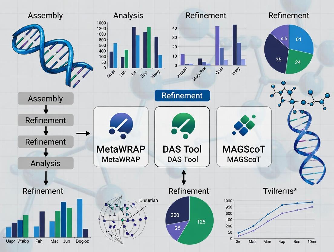 This article provides an in-depth comparison of three leading metagenomic bin refinement tools: MetaWRAP, DAS Tool, and MAGScoT.