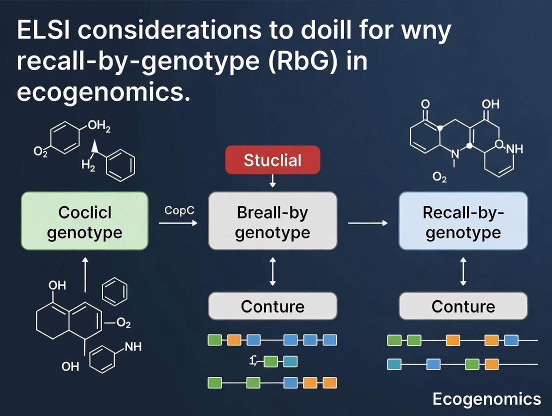 This article provides a comprehensive analysis of the Ethical, Legal, and Social Implications (ELSI) inherent in Recall-by-Genotype (RbG) study designs within the evolving field of ecogenomics.